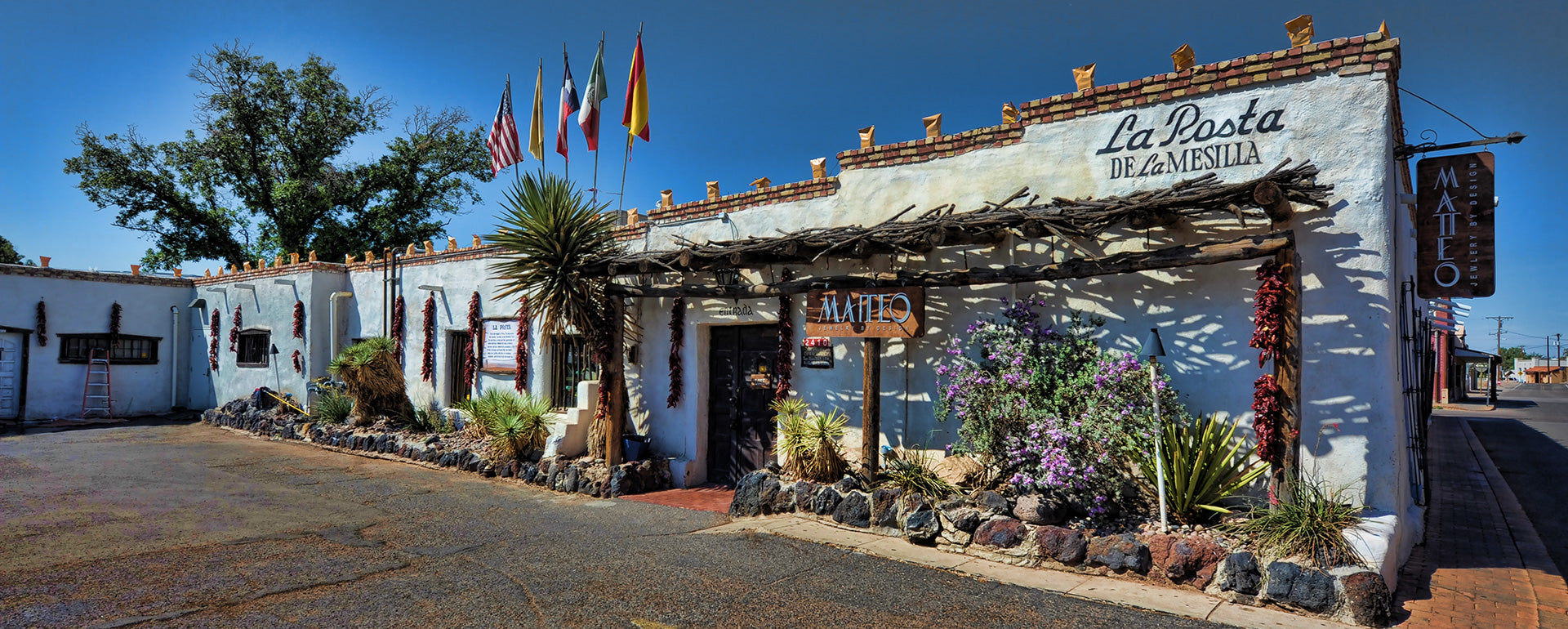 On September 16th, 1939, on the corner of a dirt street plaza in Mesilla, New Mexico, a twenty-five year old Katy Griggs opened a “little chile joint” and named it La Posta. Her uncle, George Griggs, was one of the more renowned merchant families in Mesilla and owned the compound. He loved his niece and appreciated her energetic personality so much that he sold her the property that would become La Posta for “one dollar, love and affection.” With just four tables on a dirt floor and her mother cooking in the back of the same room with no running water, Katy greeted guests and manned the cash register. Those that visited La Posta on opening day remember the large crowd who came to taste her New Mexican food dishes prepared from century-old recipes handed down over the years from the Fountain, Chavez and Griggs Families.